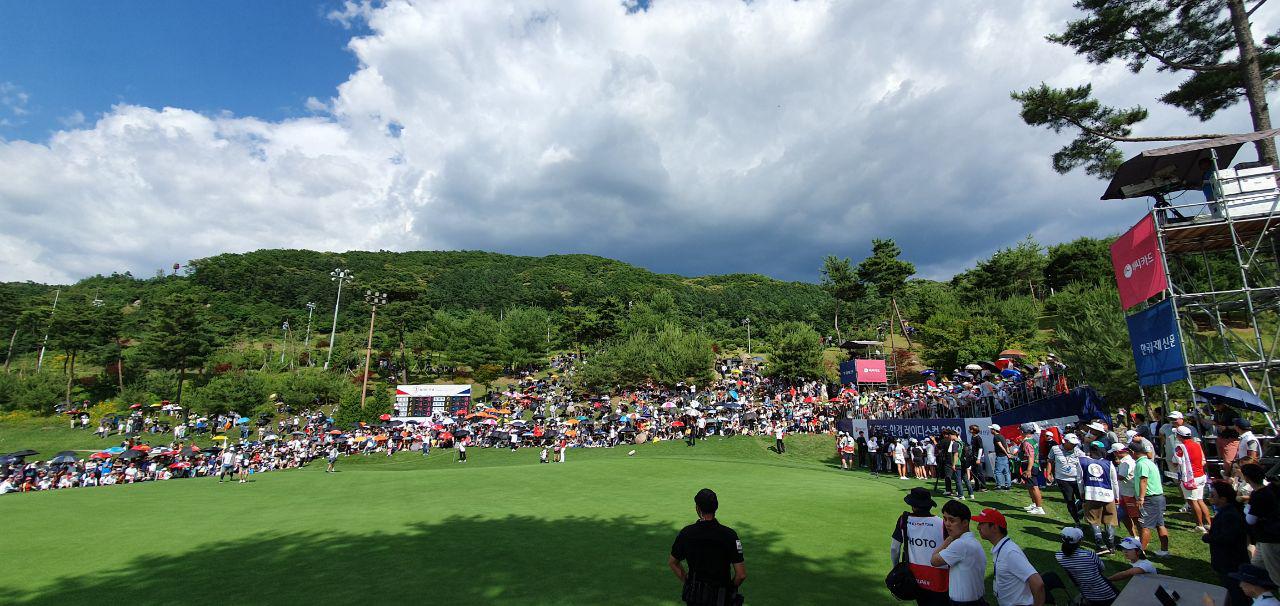 마지막 챔피언을 가리는 18번 홀 주변의 모습니다.
